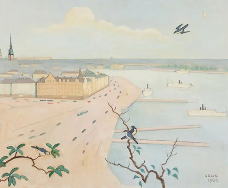 Dans les années 1930, Jolin a commencé à explorer les paysages urbains, en particulier ceux de Stockholm, qu'il a représentés avec une touche d'abstraction. Pendant la Seconde Guerre mondiale, il a fui la Suède pour se réfugier au Danemark, où il a continué à peindre.
