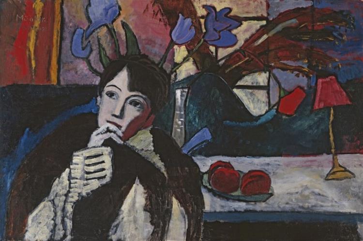 Gabriele Münter, née le 19 février 1877 à Berlin et décédée le 19 mai 1962 à Murnau am Staffelsee, est une artiste allemande du mouvement expressionniste. Elle est l'une des représentantes majeures de l'avant-garde munichoise du début du XXe siècle en tant que membre du mouvement artistique "Der blaue Reiter" (mouvement du Cavalier bleu).