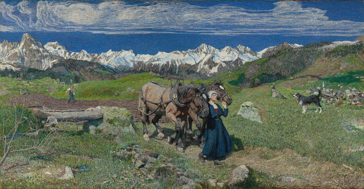 Giovanni Segantini (né à Arco sur le lac de Garde le 15 janvier 1858 - mort dans le Schafberg Pontresina, le 28 septembre 1899) est un peintre italien, rattaché au courant du symbolisme. C'est un peintre de genre, qui a représenté des sujets typiques, dont des paysages de montagnes.