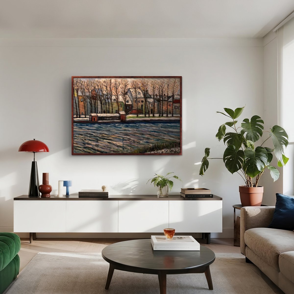 Les arbres nus, vigiles du temps, dressent leurs doigts fins vers un ciel sans promesse.Sur l’eau, les reflets glissent lentement, écorchés par le vent d’hiver, un murmure d’ardoise et de plomb.Rien ne bouge, sinon le frisson de la lumière sur la surface tremblante, comme si la mémoire elle-même hésitait à se figer.