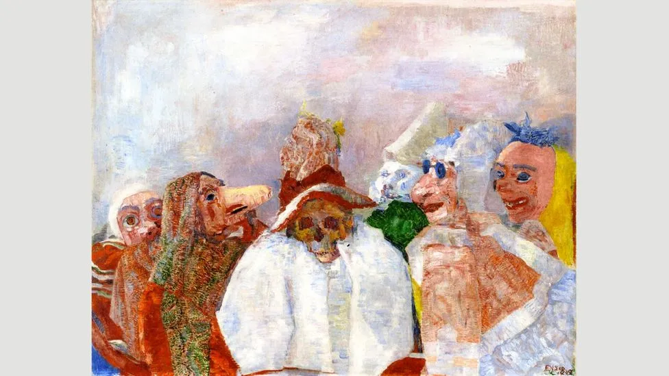 D'après un tableau de James Ensor "Masks Mocking Death" - Huile sur toile 60 × 40
