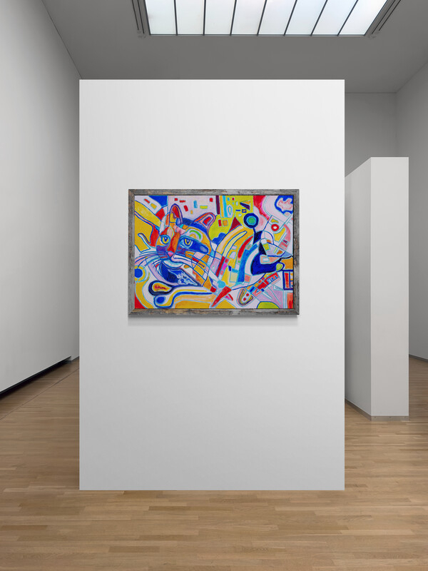 Un chat peint selon le style moderne de Kandinsky. Un tableau créé selon la théorie des correspondances entre formes géométriques et couleurs.
