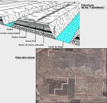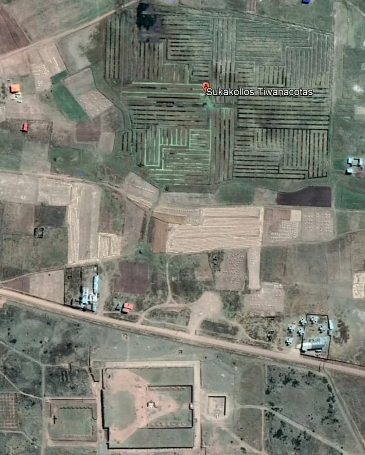 Ces terrasses artificielles étaient composées d'une couche inférieure de pierres irrégulières, sur laquelle était placée une couche d'argile imperméable, puis du gravier fin et enfin des terres arables. Entre coulaient des canaux d'eau, alimentés par le détournement d'une rivière. Elles constituent une importante avancée, car elles ont rendu possible une forme d’agriculture durable et par conséquent la bonne marche de l’empire Tiwanaku. Ces innovations, reprises par les civilisations suivantes, se sont propagées jusqu’à Cuzco au Pérou. (Source : whc.unesco.org)