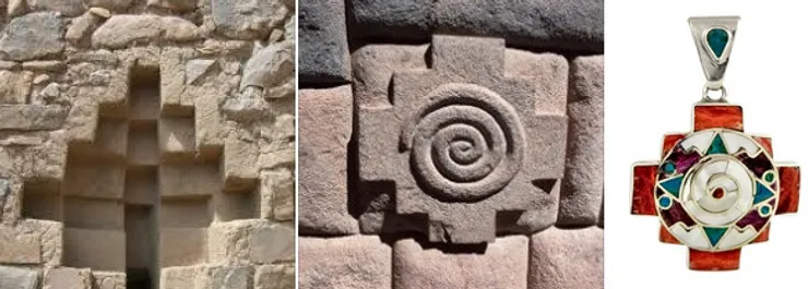 Un de ces symboles, appelé Chacana, que l'on retrouve partout dans la culture andine (architecture, bijoux, textile, céramique, etc.) représente les 4 points cardinaux, nord, ouest, sud, est.