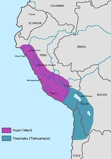 La civilisation de Tiwanaku a aussi fortement influencé celle de Huari. Les Huari furent contemporains de la civilisation de Tiahuanaco qui s'est développée sur le haut plateau bolivien, sur les rives du lac Titicaca