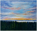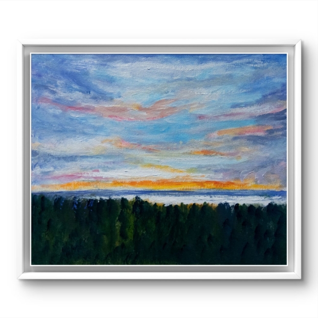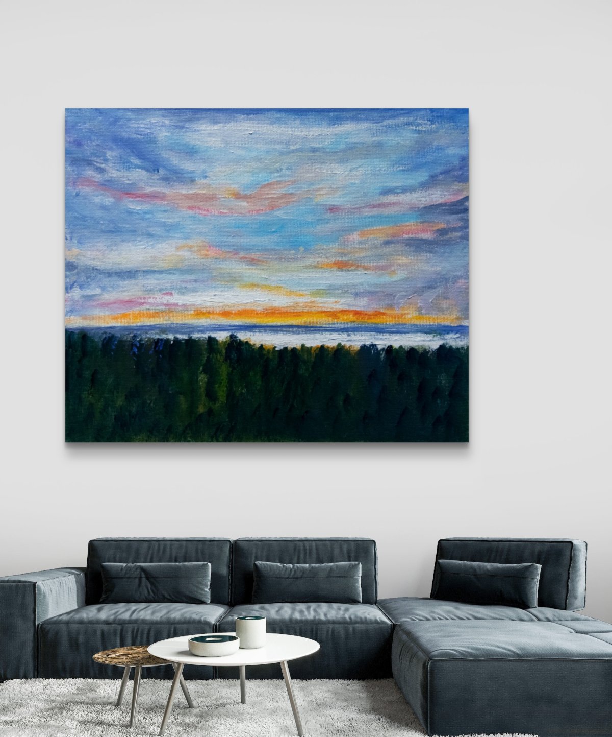 Le ciel s’étire en nappes bleutées, griffées de roses et d’orangés comme des secrets murmurés au crépuscule.