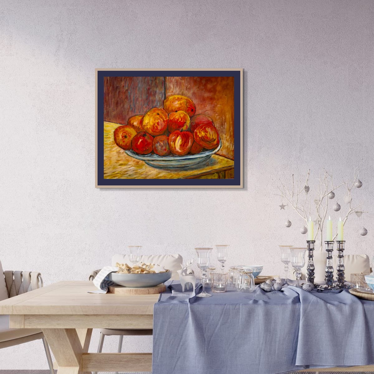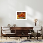 Le fond, aux teintes de miel et de bois, chante une chaleur ancienne, celle d’un foyer, d’un dimanche, où le fruit devient mémoire.