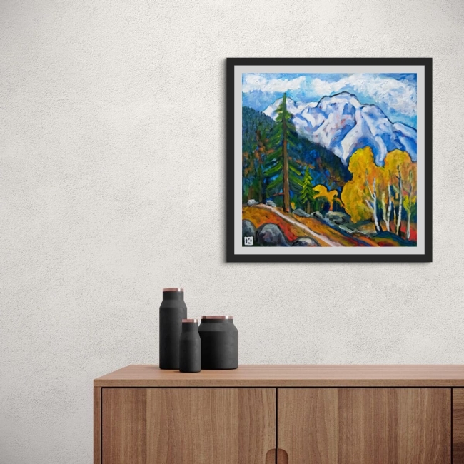 Sous l’ombre immense des montagnes couronnées de neige, le souffle de l’automne fait danser les couleurs vives.