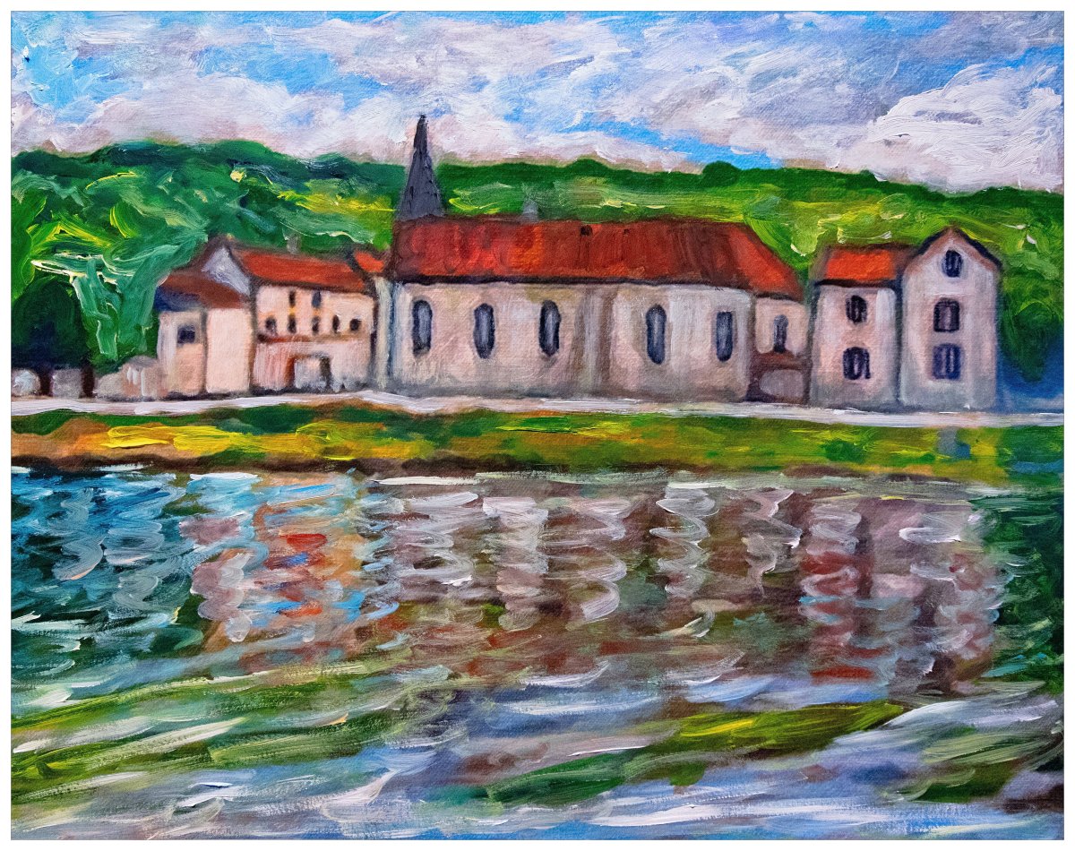 Sous le souffle tiède du jour, la lumière glisse sur les pierres, effleure la façade d’une église, puis se perd dans l’eau tremblée.