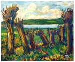 Leurs troncs fendus portent les cicatrices du temps, mais le vert tendre des herbes les enlace d’un espoir persistant. Au loin, l’eau calme reflète le ciel, fragile miroir où se mêlent la douceur du jour et la mélancolie du soir. C’est un lieu où la mémoire s’attarde, où chaque tronc semble murmurer une histoire de saison perdue.