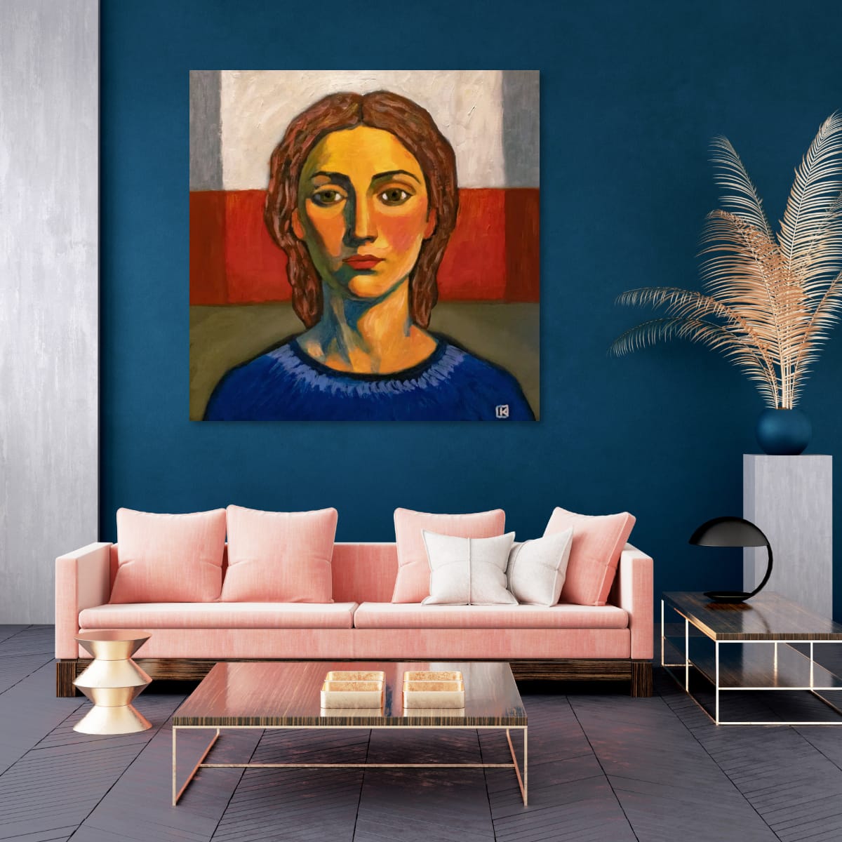 « Ma Vénus de Milo » : quand la beauté classique rencontre l'expression contemporaine. Dans cette œuvre, j'ai exploré la rencontre entre force et vulnérabilité à travers des choix de couleurs audacieux et une composition géométrique. Les bleus profonds contrastent avec les ocres chauds, tandis que la ligne d'horizon d'un rouge vif crée un point d'ancrage visuel puissant. Chaque coup de pinceau était mûrement réfléchi, chaque couleur choisie pour évoquer la grâce intemporelle de l'art classique réinventée à travers un prisme moderne.