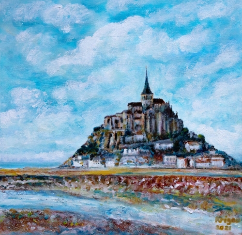 Réf. CS3221 - Mont Saint-Michel - Huile sur toile 30 x 30 - retouches effectuées, le 12 mars 2025