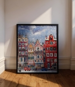 Sous le ciel d’ardoise, les maisons se serrent, hautes et bigarrées, comme pour se tenir chaud.