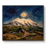 La montagne se dresse, blanche et grave, comme une pensée qui refuse de s’éteindre. Au-dessus d’elle, la lune repose, lente, gardienne d’un silence millénaire.