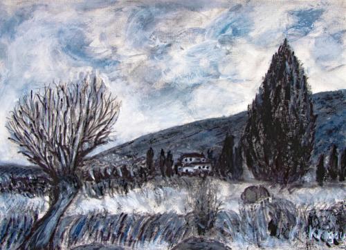 Entre Bellmund et Ipsach - Esquisse à l'acrylique, fusain et crayon - 36 x26 réf. CS3823 - premiers travaux le 05/04/23