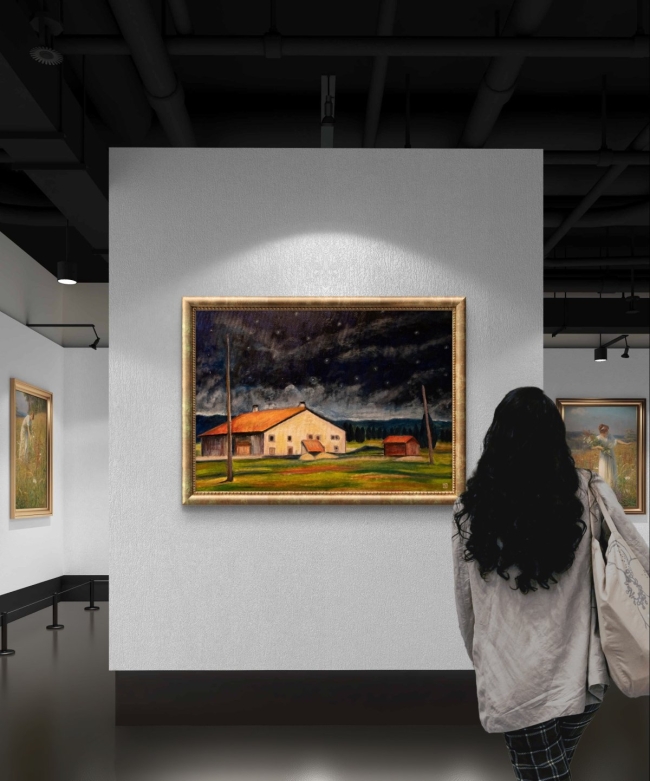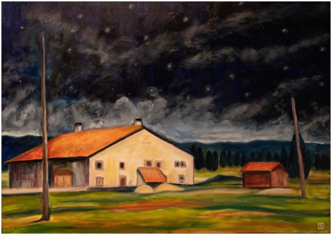 Tombée de la nuit sur les Franches-Montagnes – réf. CS1825 - Huile sur toile 50 x 70