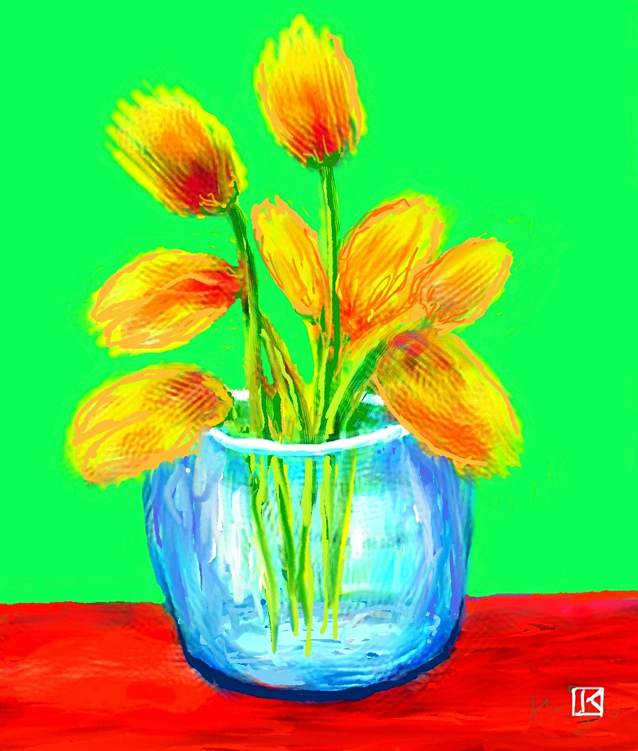 Hommage humble à la maîtrise des couleurs de David Hockney. Cette œuvre digitale célèbre l'esprit fougueux de la nature. 🌷